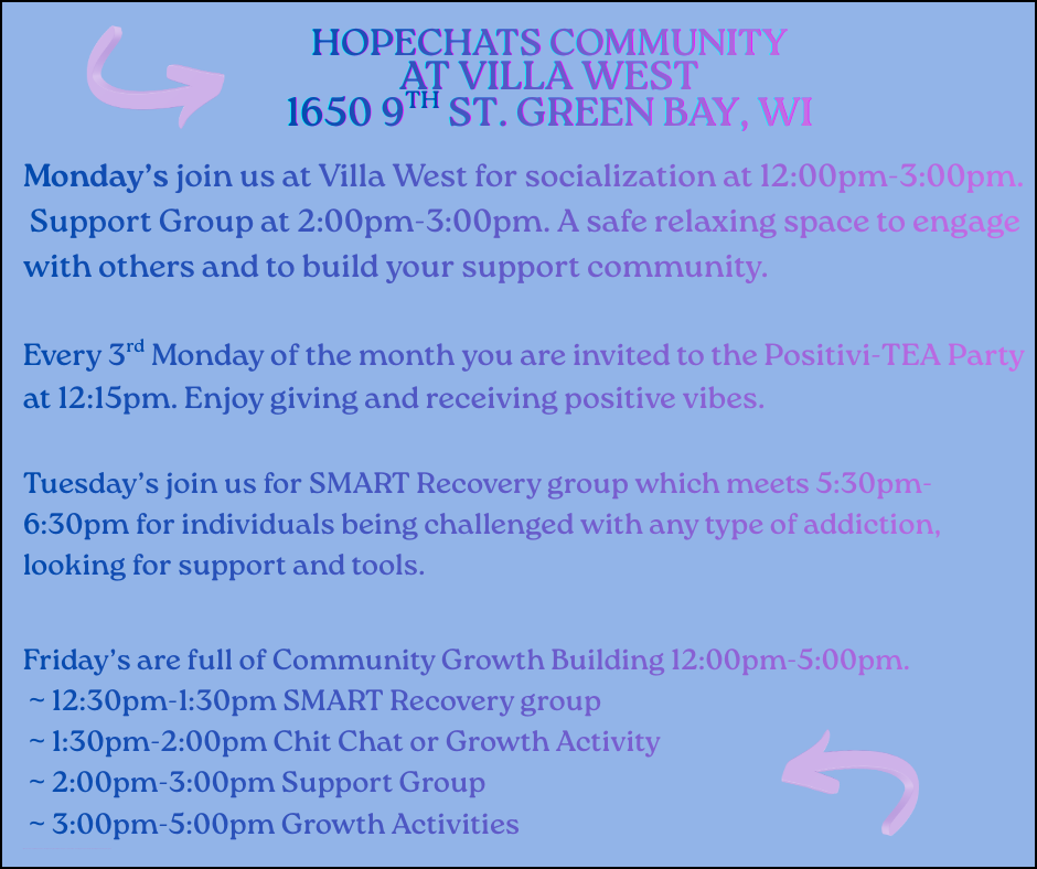 We provide support to people in multiple formats and locations throughout the Green Bay Area: